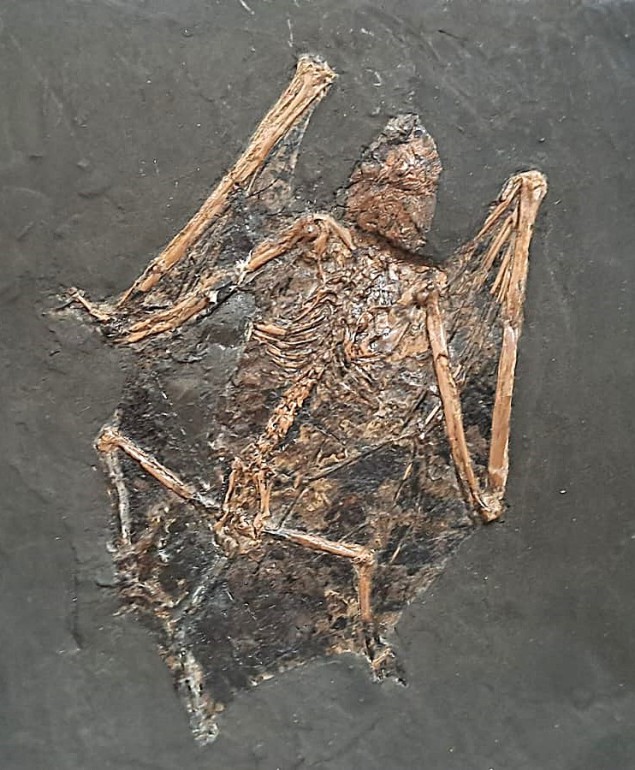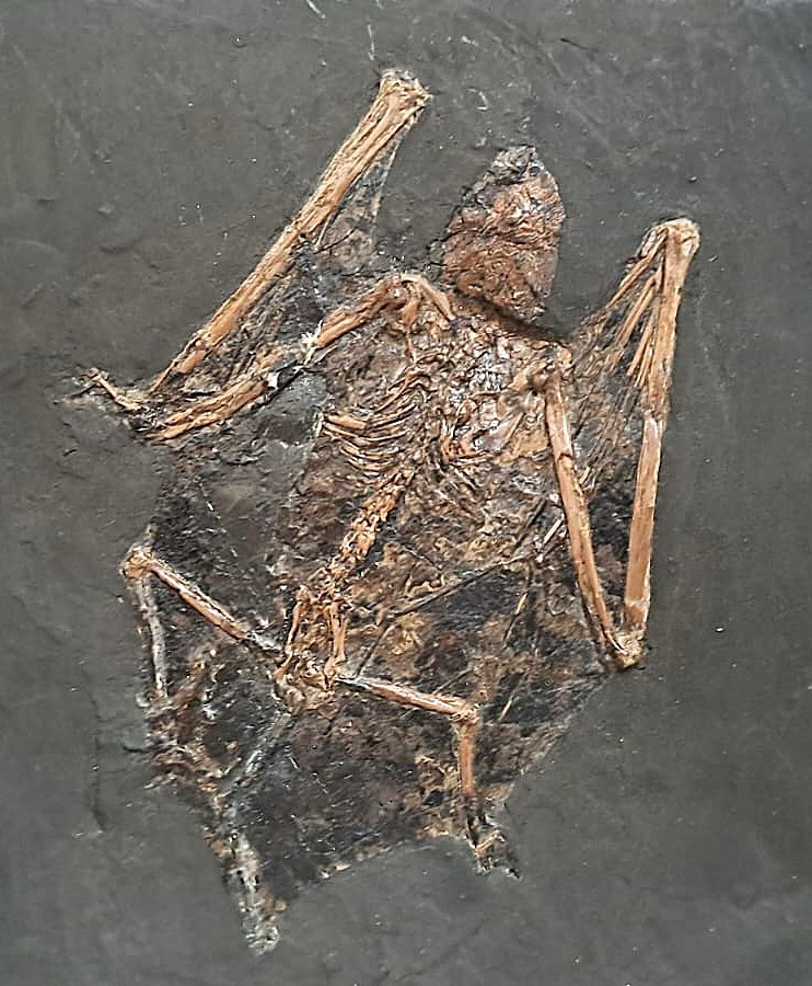 Sammlung: US - Urfledermaus Palaeochiropteryx tupaiodon (8,2 cm) , Altfund aus dem Eozän der Grube Messel mit Hauterhaltung und Mageninhalt