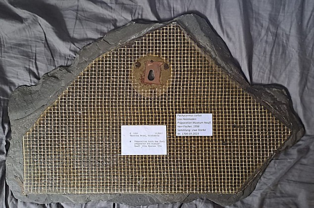 Hypsocormus curtus, 42 cm, Lias von Holzmaden, 1956 präp. von Herrn Fischer, Museum Haff, für 2200,- E
