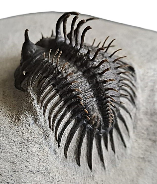 Oben: Ceratarges aries mit Stachel am Pygidium, unten: Ceratarges zirgensis, Mittl. Devon, Jbel Zireg,