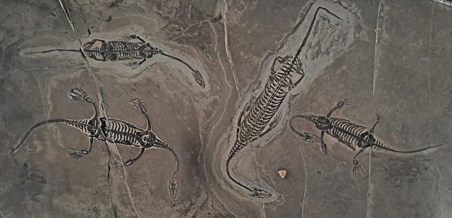 Keichosaurus sp., 28, 22, 21 und 16 cm, Mittl. Trias, Goizhou / China