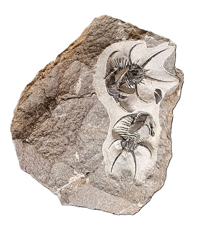 Eospondylus und 2 x Furcaster palaeozoicus, ca. 7-8 cm, aus dem Unterdevon von Bundenbach